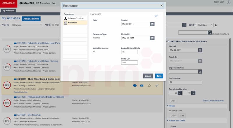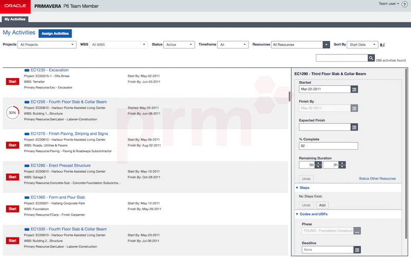 Primavera Progress Reporter (Team Member) - İlerleme ve işçilik saatlerinin girişi için proje ekip üyeleri tarafından kullanılır, web veya mobil cihazlar üzerinden güncellemeye imkan sağlar.