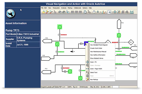 Mühendislik gibi doküman yoğun süreçlerde, tasarım gözden geçirme, varlık yönetimi ve bakım yönetimi alanlarında, 2D ve 3D teknik resimleri ilgili kaynaklarla paylaşmayı kolaylaştırır.